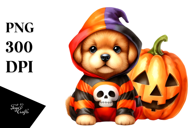 Cute Baby Dog Dressed for Halloween | Sublimation | Clipart example image 1