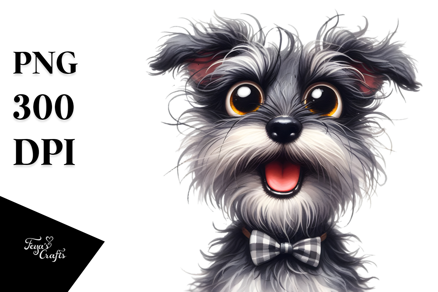 Funny Miniature Schnauzer, Watercolor Clipart example image 1