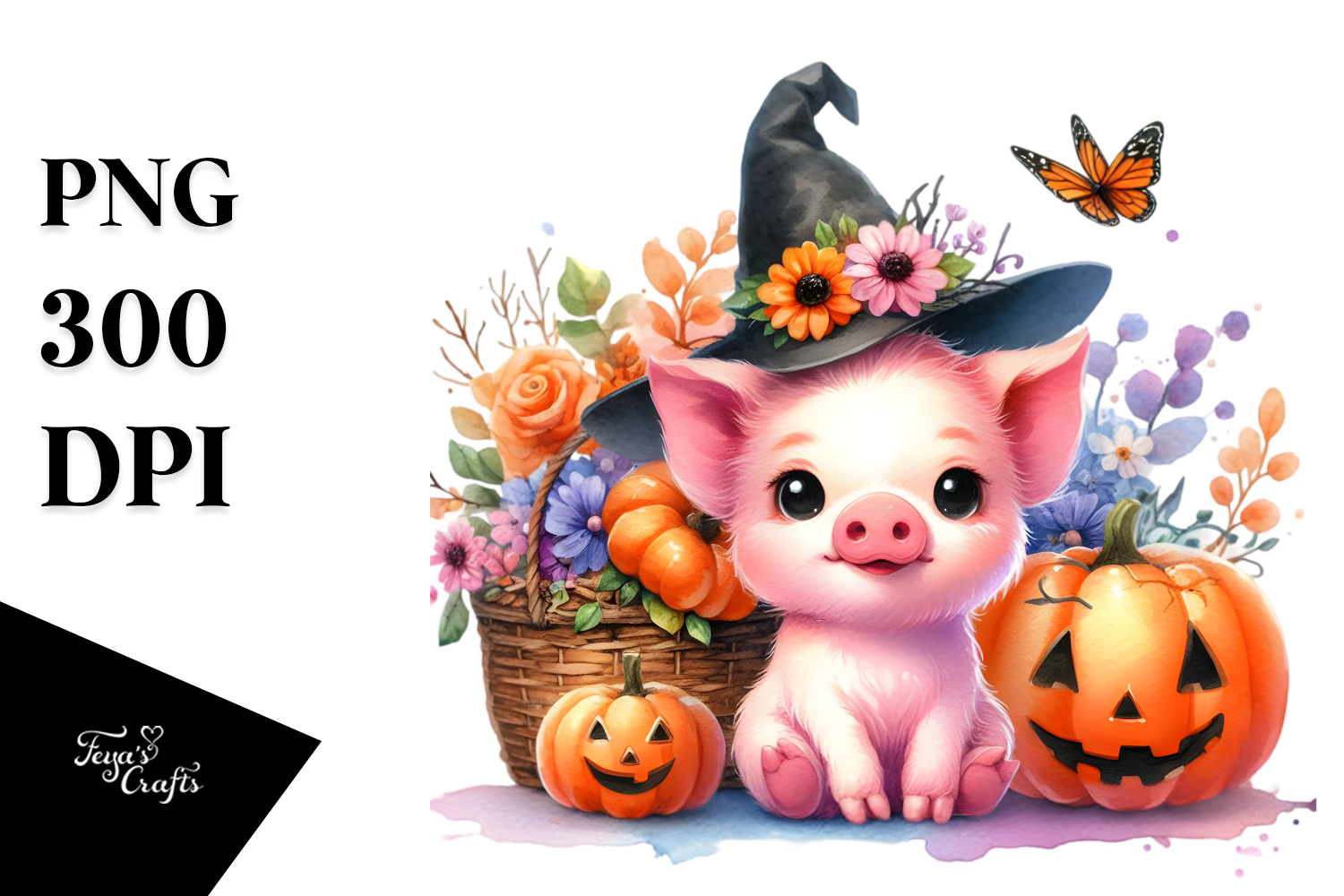 Similar Design Products to Watercolor Baby Pig with Flowers | Clipart
