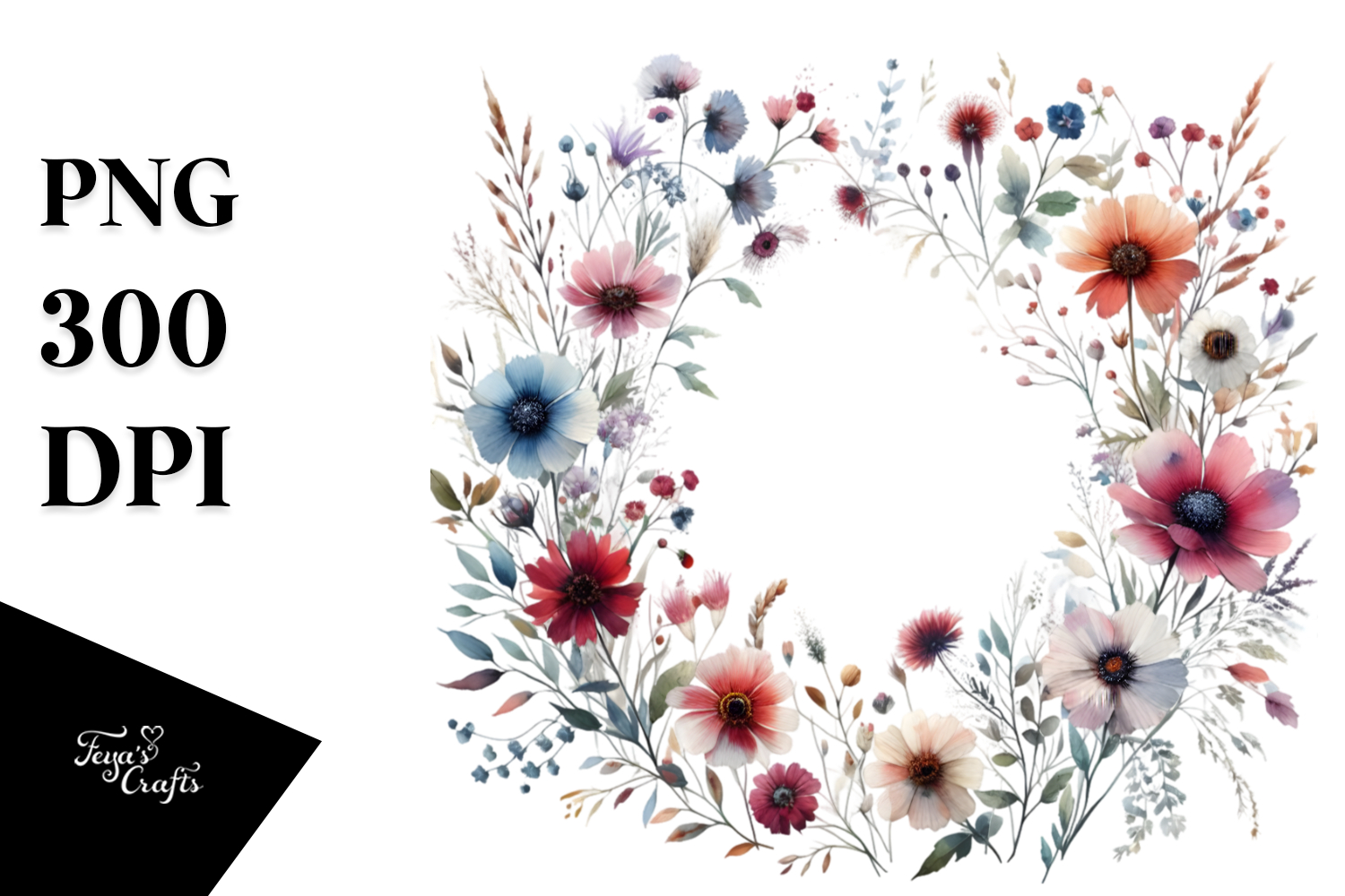 Bold Watercolor Sticker Summer Flower Png Wildflowers Sublimation Sorrounded