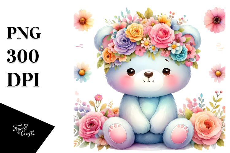 Sticker Summer Flower Bear Png Sublimation Pastelcolors Colorfulflowers Flowercrown