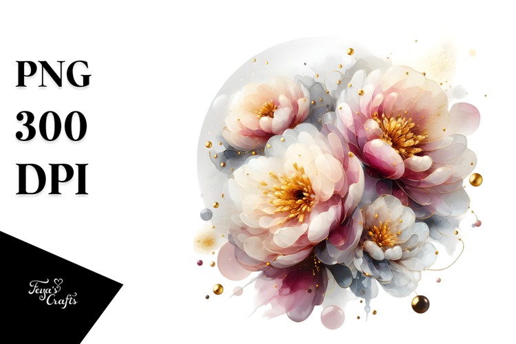 Sticker Summer Flower Golden Abstract Peonies Png Glass Sublimation