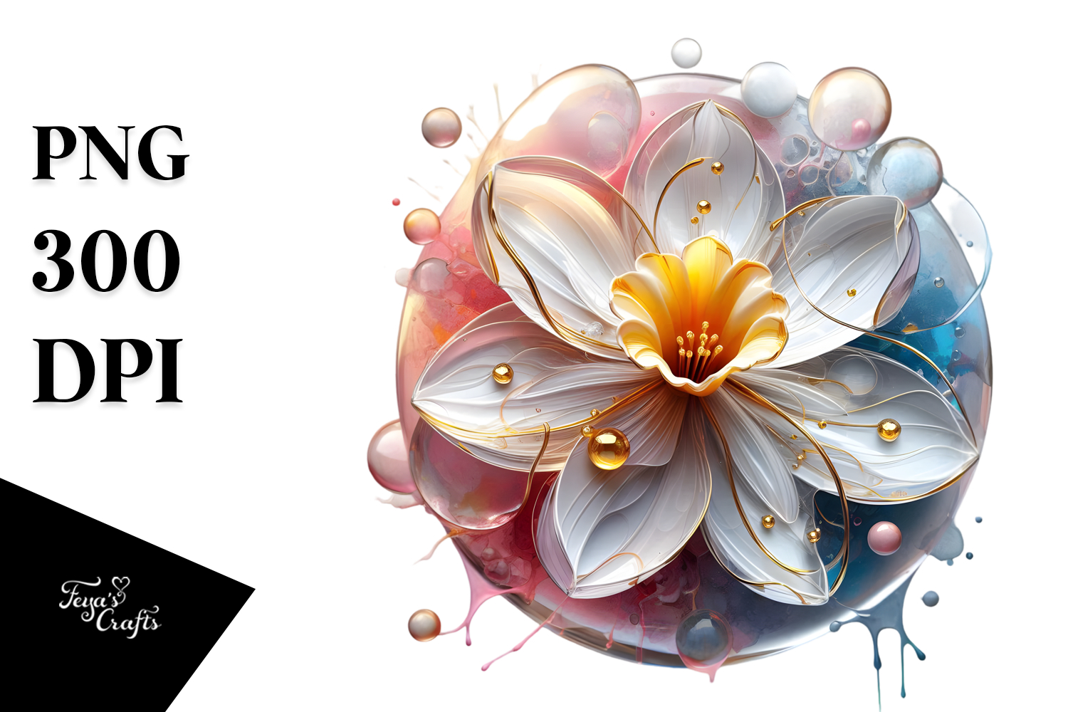 Watercolor Sticker Summer Flower Golden Abstract Png Glass Sublimation