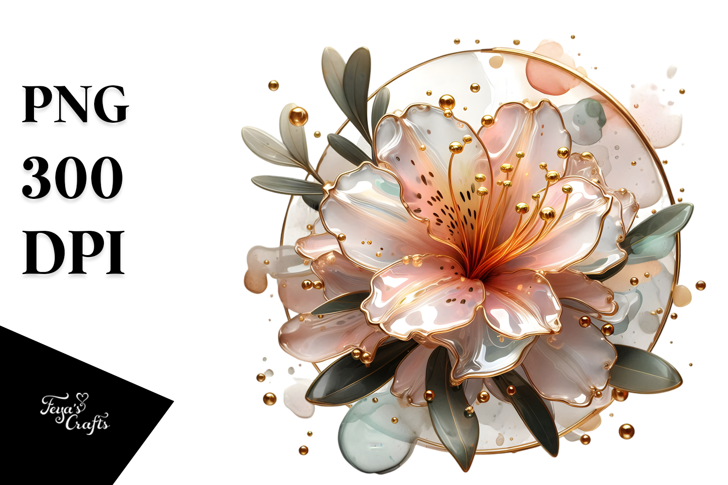 Watercolor Sticker Summer Flower Golden Abstract Png Glass Sublimation