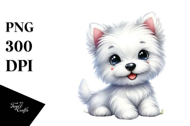Watercolor Cute Cartoon West Highland White Terrier example image 1