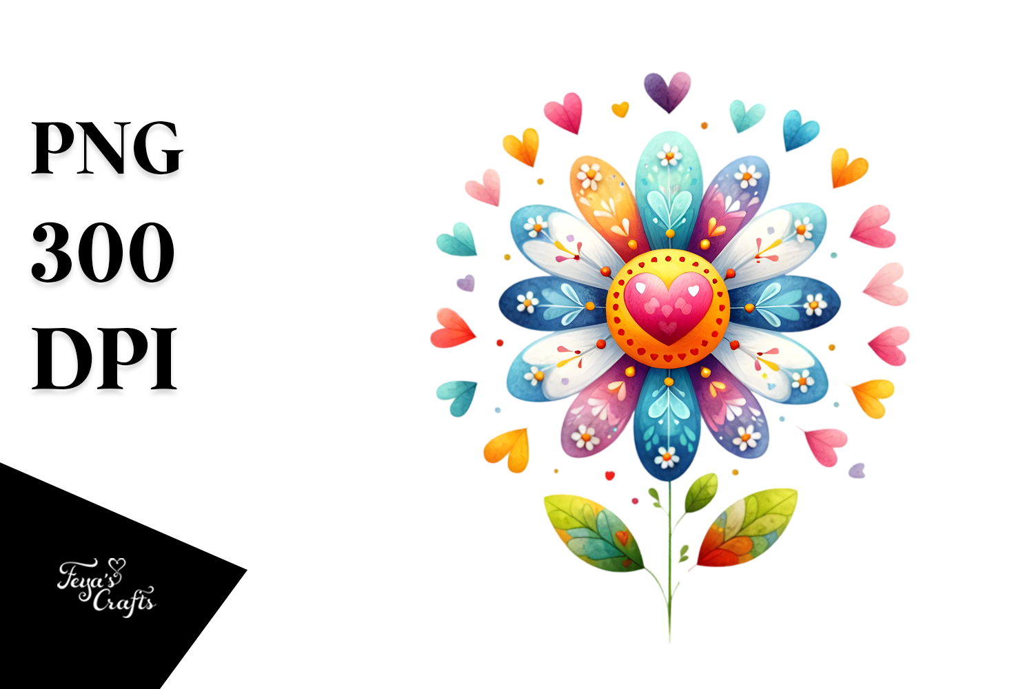 Colorful Digital Flower with Heart Petals, Transparent PNG example image 1