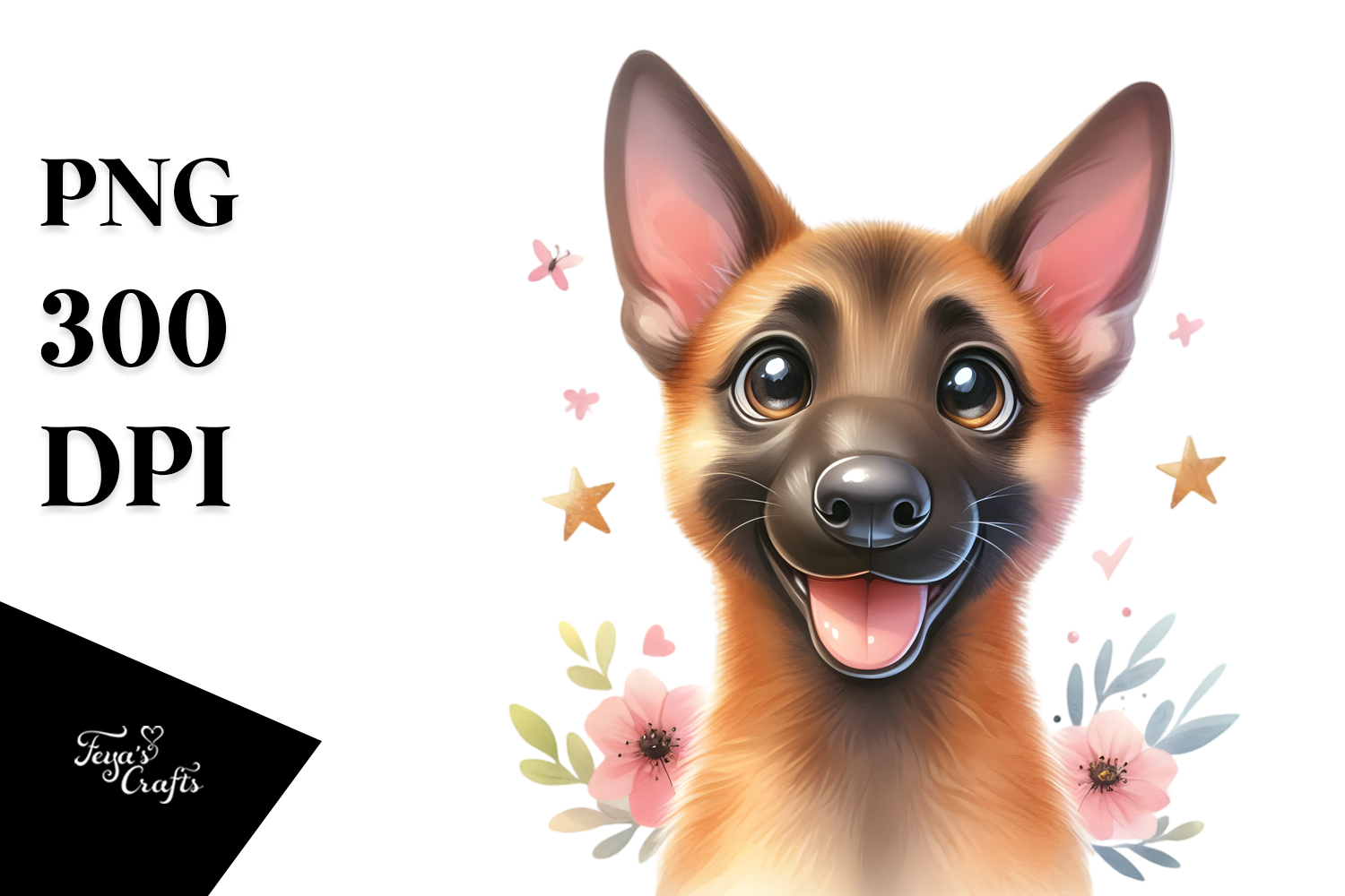 Sticker Summer Cute Happy Flower Png Sublimation Malinois Bigeyes