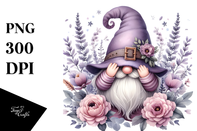 Watercolor Cute Baby Sublimation Gnome Whitebackground Bighat Lavenderfloralframe