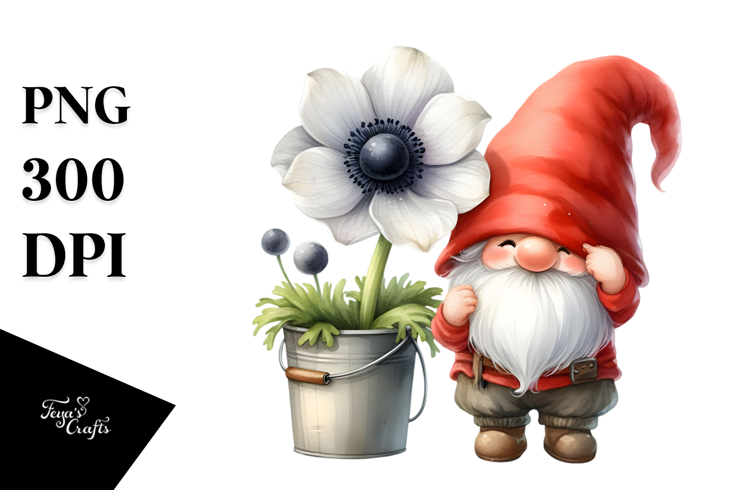 Cute Gnome with Anemone Floral Ornament PNG example image 1