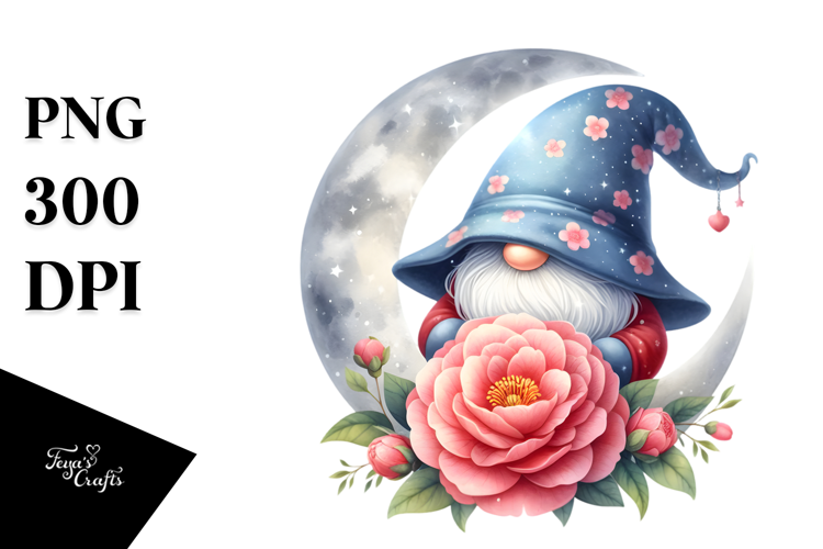 Cute Gnome with Camellia PNG example image 1