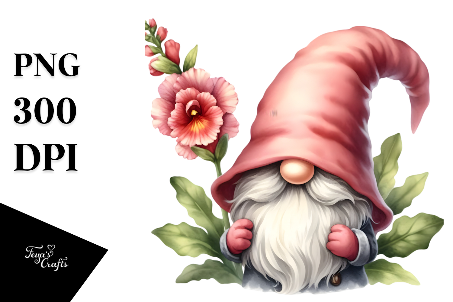 Watercolor Large Cute Hat Gnome Snapdragon Floralornament