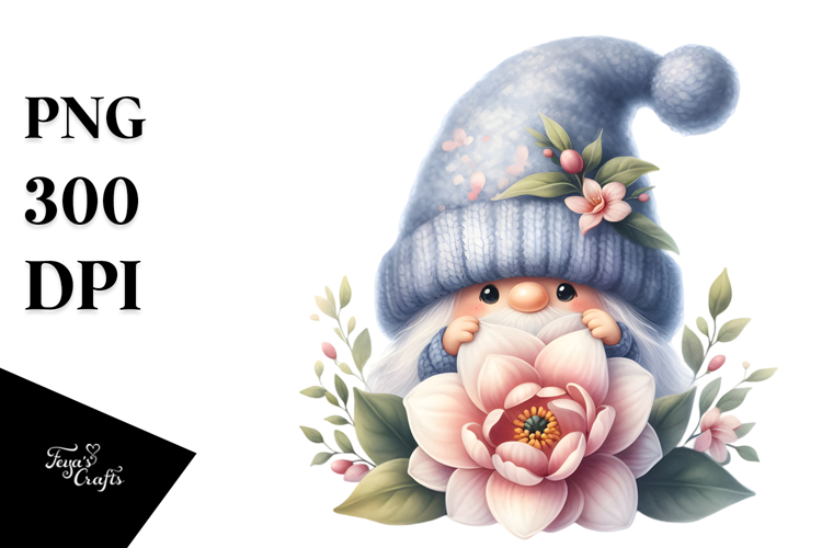 Cute Gnome with Gardenia PNG example image 1