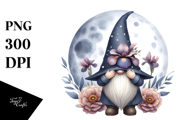 Similar Design Products to Cute Gnome with Iris Floral Frame, Watercolor Art