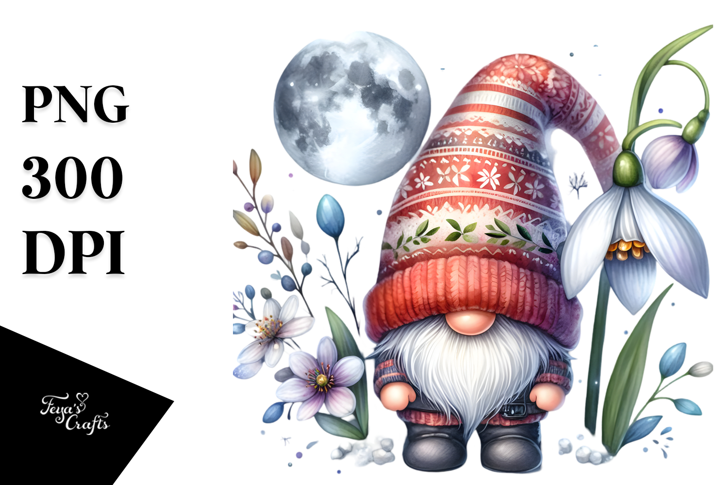 Similar Design Products to Cute Watercolor Gnome with Snowdrop Floral PNG