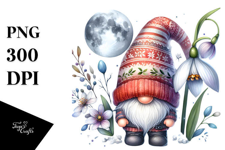 Cute Watercolor Gnome with Snowdrop Floral PNG example image 1
