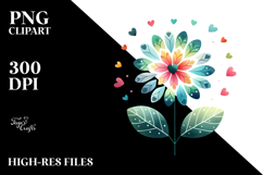 Colorful Digital Flower with Heart Petals, Transparent PNG example image 1