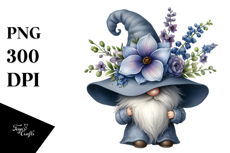 Cute Gnome with Delphinium Floral Ornament PNG example image 1