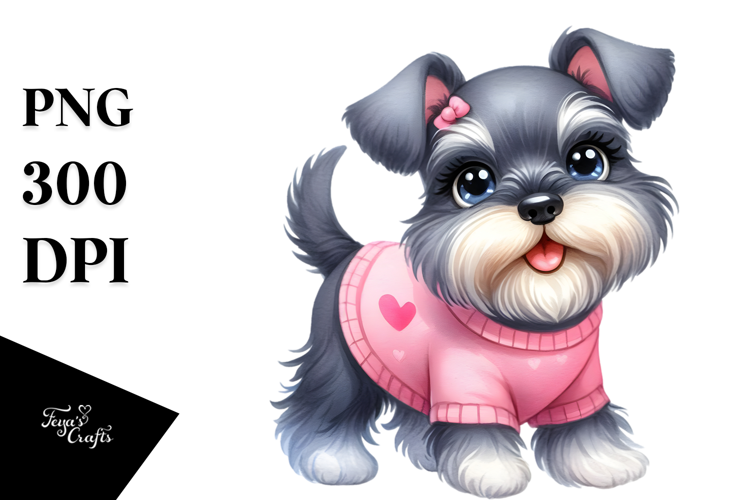 Watercolor Cute Miniature Schnauzer PNG example image 1