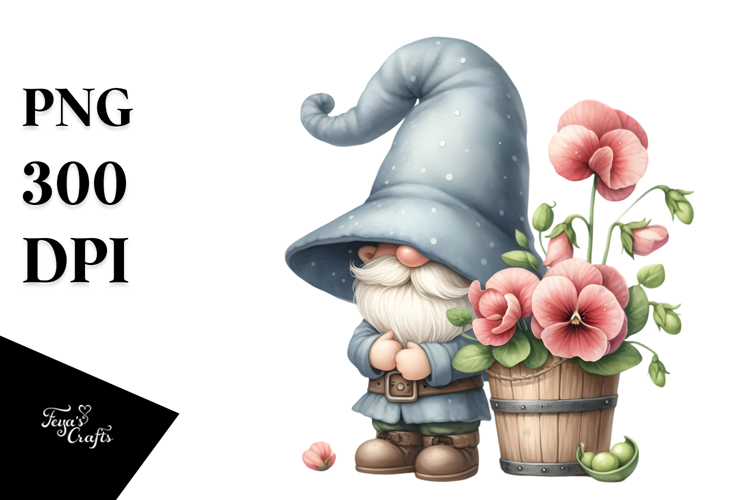Sweet Pea Gnome with Daisy Floral PNG example image 1