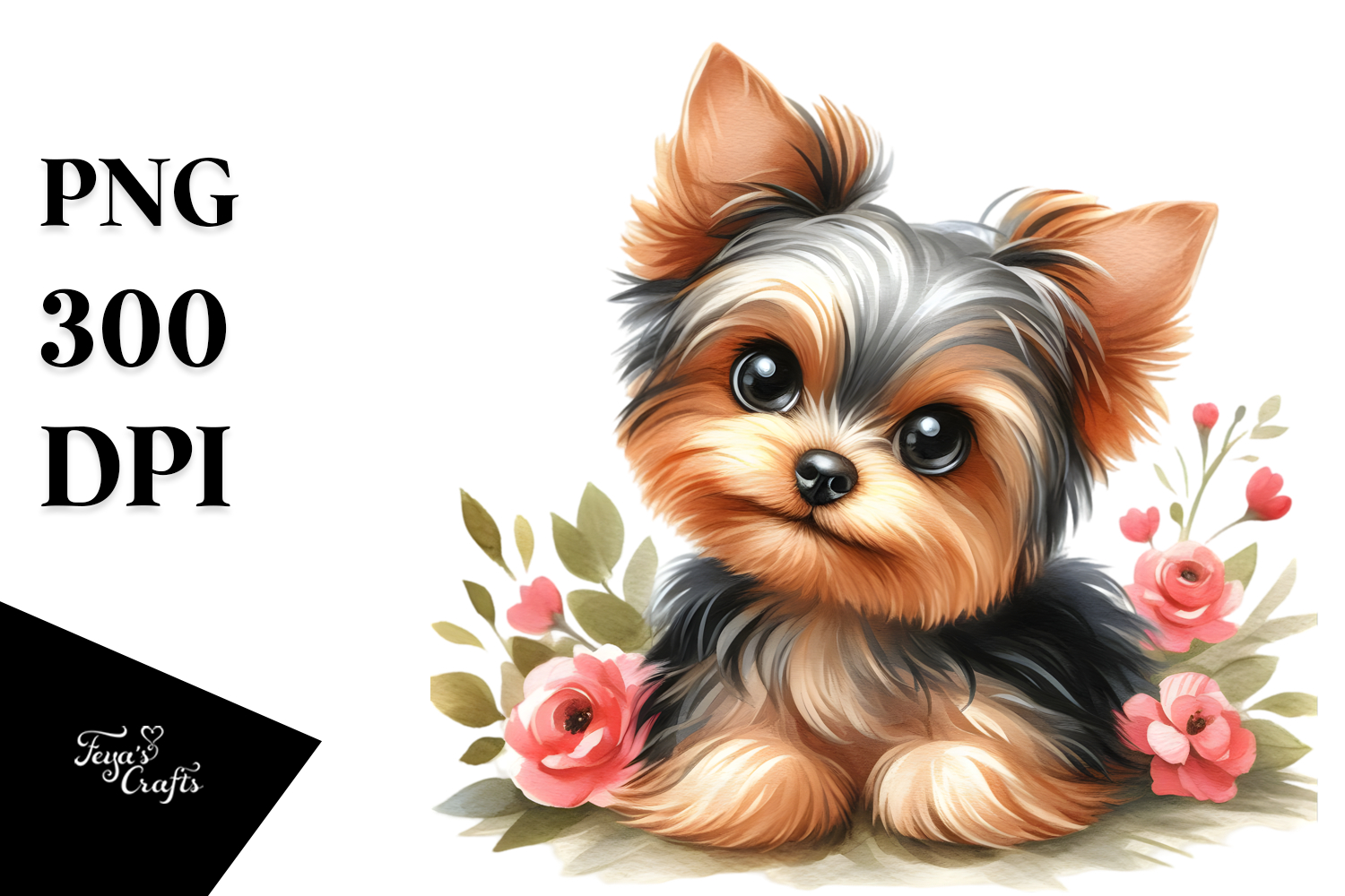 Watercolor Sticker Summer Baby Flower Png Sublimation Yorkshireterrier Bigeyes