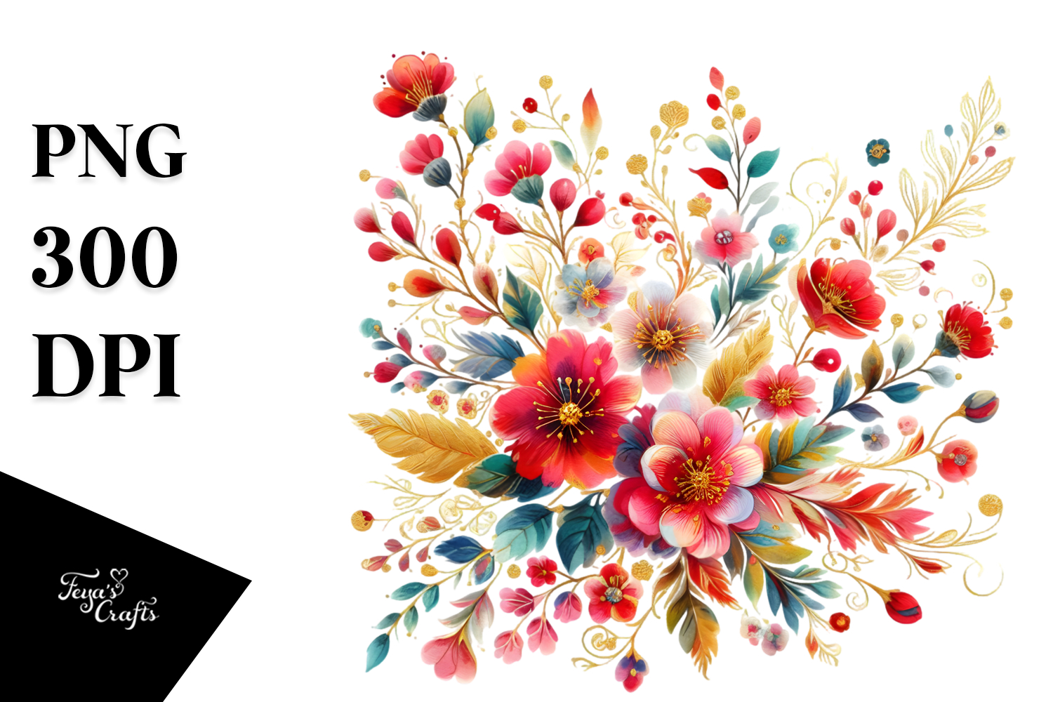 Similar Design Products to Colorful Red Flowers with Gold Insertions PNG
