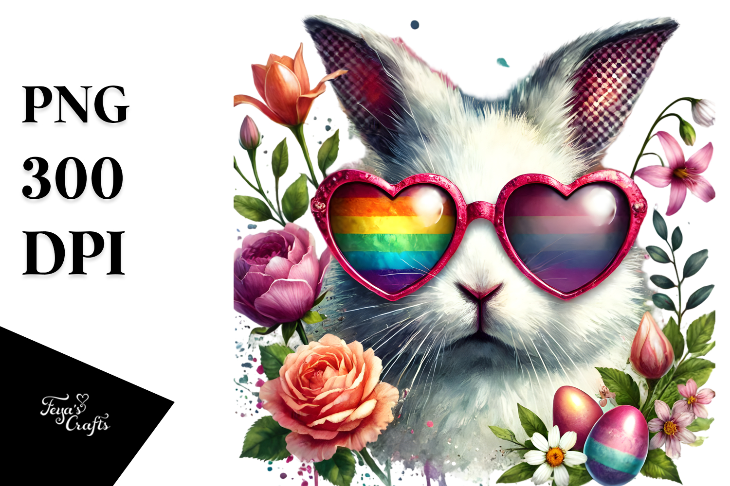 Whitebackground Colorfulwatercolordigitalpainting Surroundedbywhitespace Easterbunnywithheart-shapedsunglasses