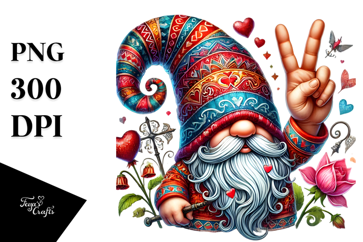 Similar Design Products to Valentines Gnome with Victory Sign PNG