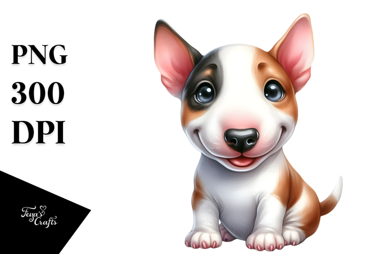 Baby Cartoon Bull Terrier Watercolor Cute PNG example image 1