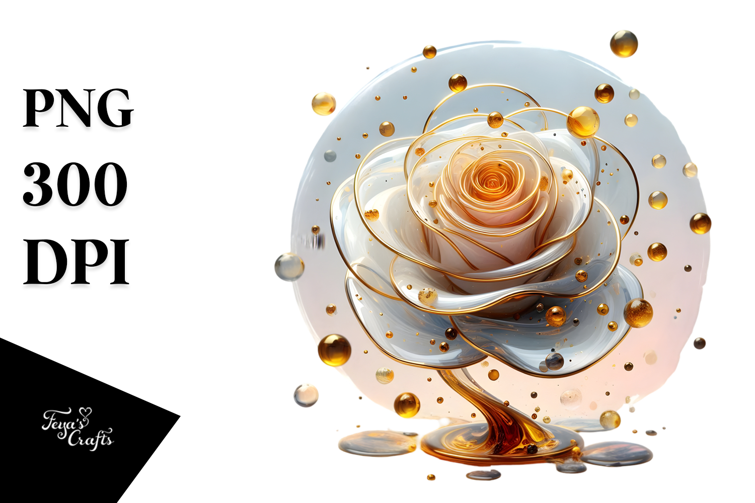 Sticker Summer Flower Png Sublimation Glassmaterial Smallgoldeninsertions Roundwatercolorsplash Glossyrose
