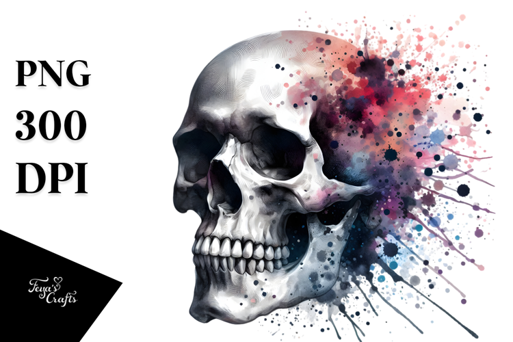 Skull with Watercolor Splashes PNG example image 1