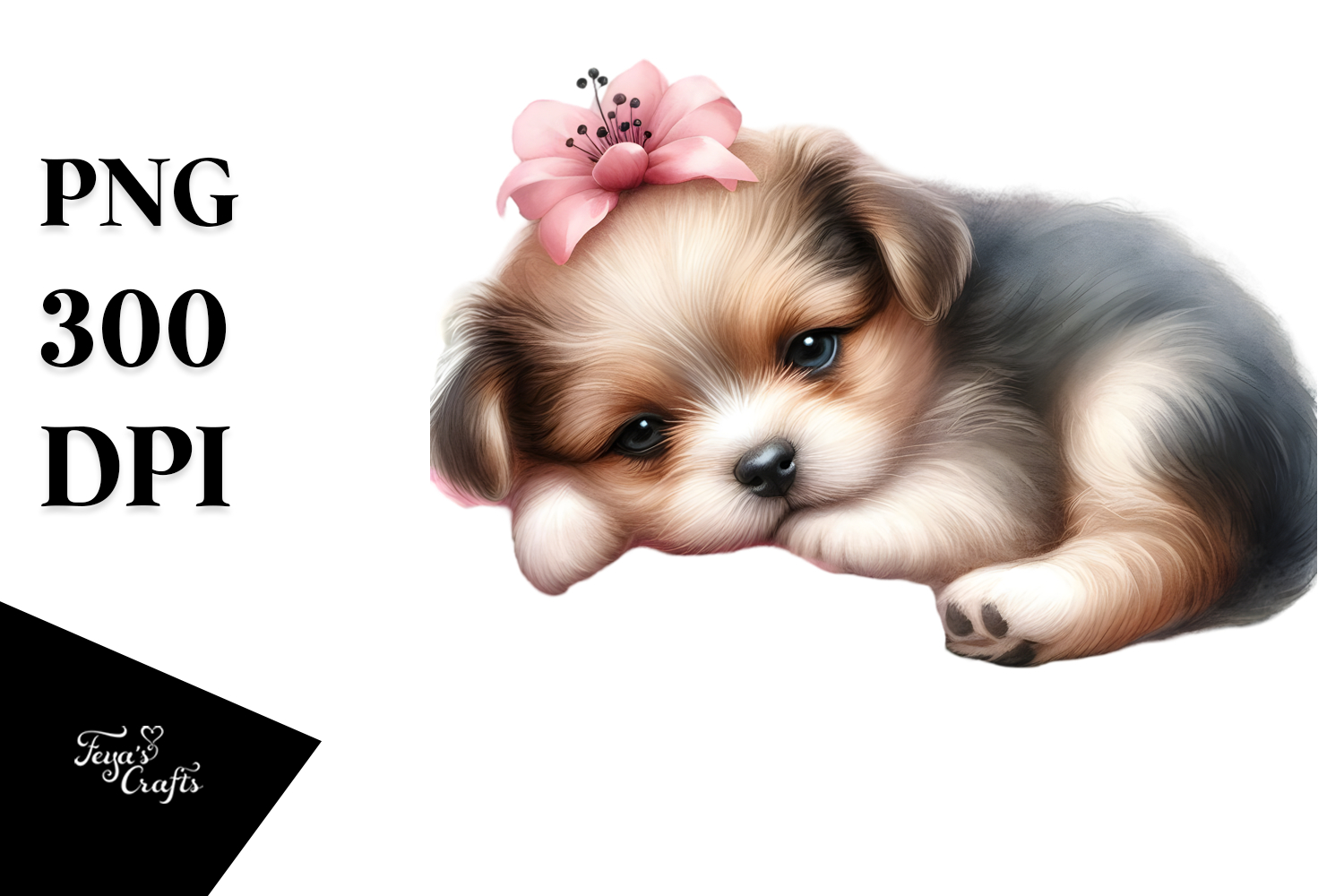 Clipart Sleeping Whitebackground Bigeyes Cutebabypuppy Smallbody Digitalwatercolor