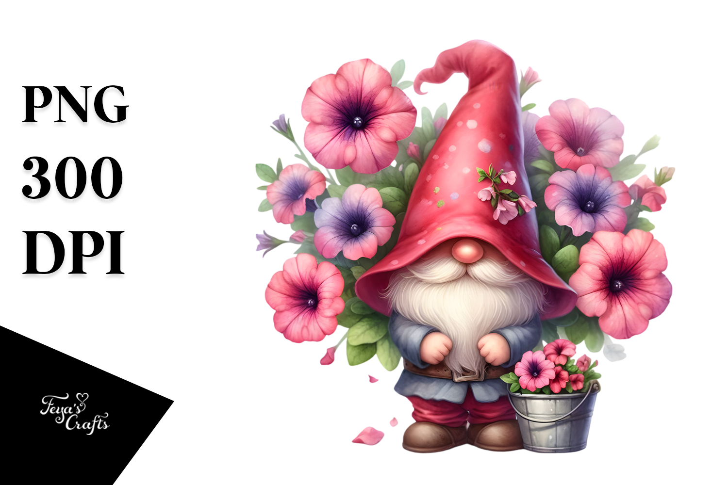 Similar Design Products to Cute Gnome with Begonia, PNG