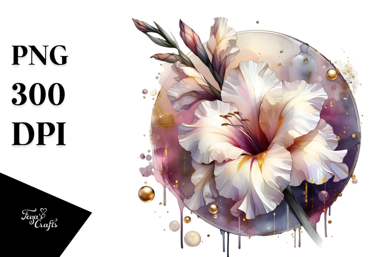 Sticker Summer Flower Golden Abstract Png Glass Sublimation Gladiolus