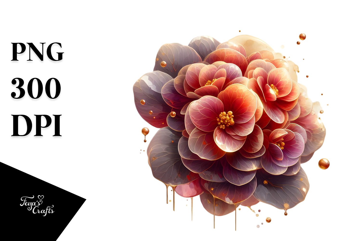 Sticker Summer Flower Golden Abstract Png Glass Sublimation Begonia