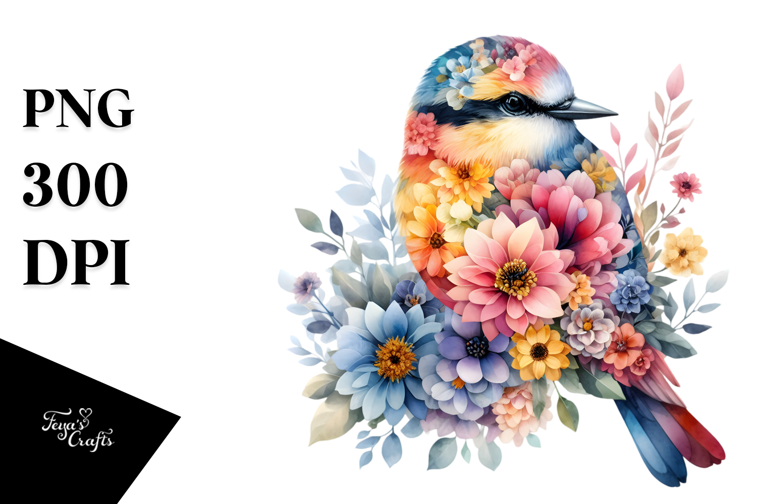 Similar Design Products to Colorful Bird with Flowers, PNG