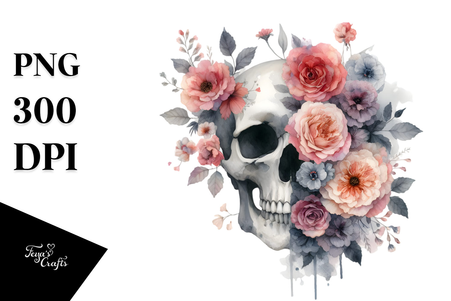 Similar Design Products to Colorful Skull with Spring Flowers, PNG