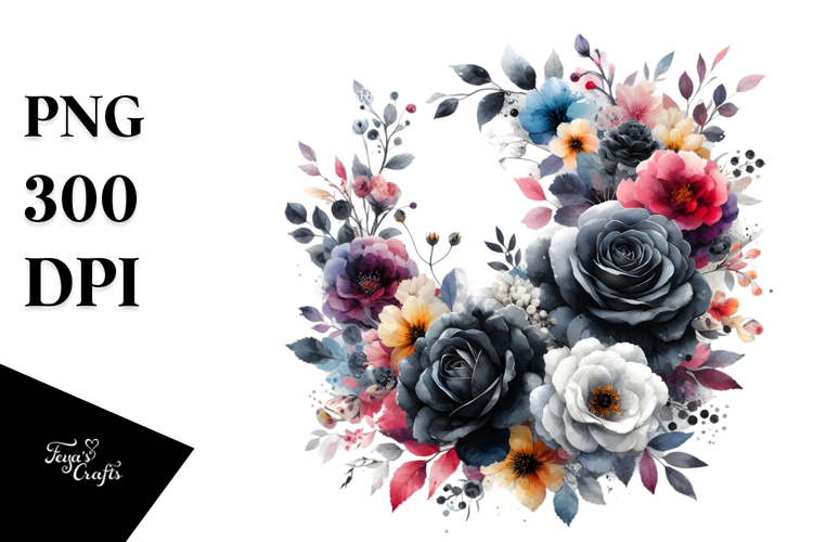 Similar Design Products to Colorful Floral Frame with Black Roses PNG