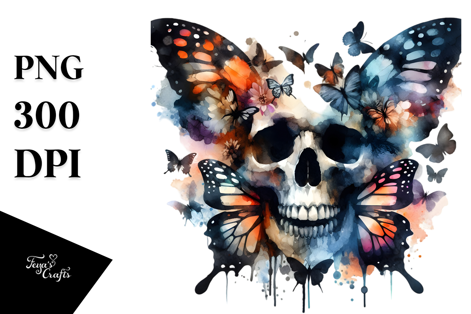 Sticker Summer Skull Flower Png Grungy Sublimation Whitebackground Butterflysilhouettes
