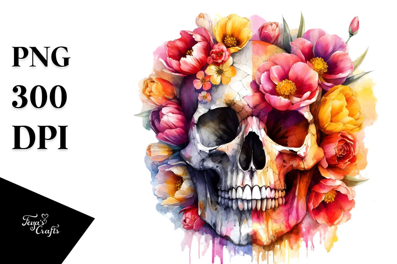 Similar Design Products to Colorful Skull with Spring Flowers PNG
