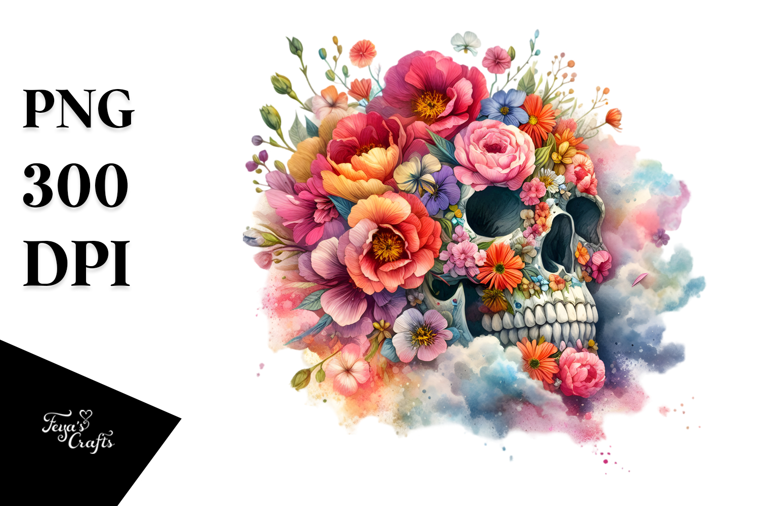 Similar Design Products to Colorful Skull with Spring Flowers PNG