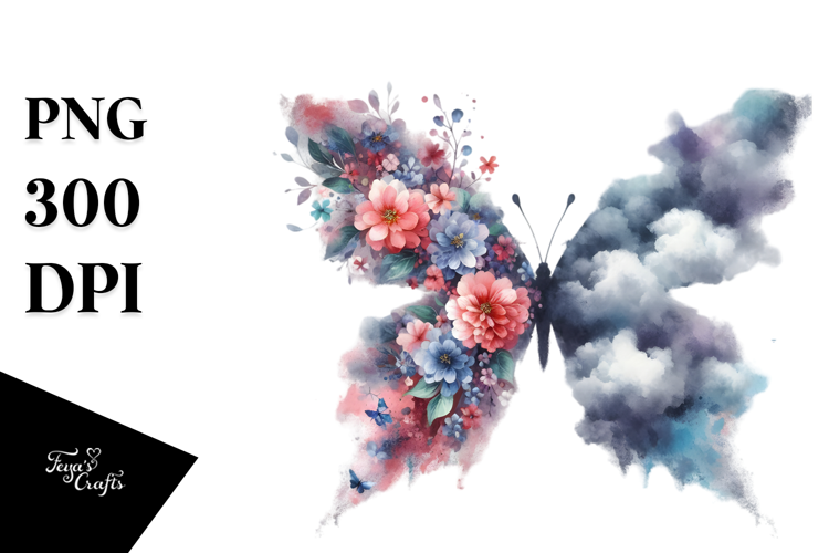 Watercolor Butterfly with Flowers, PNG example image 1