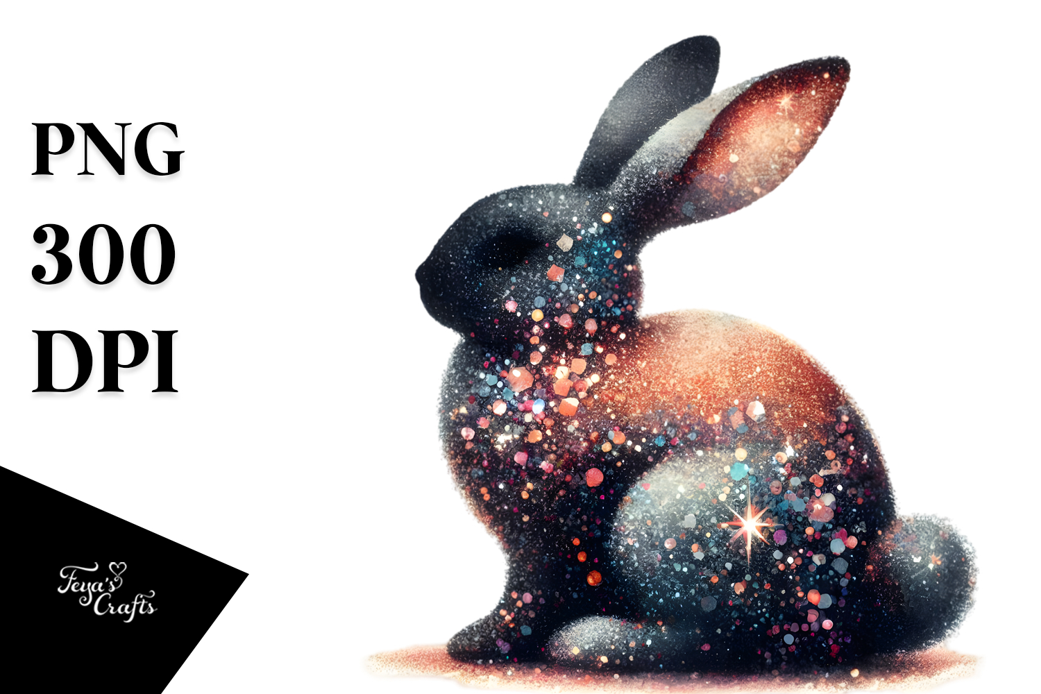 Watercolor Elegant Creative Silhouette Bunny Glitter View Back Sparkling