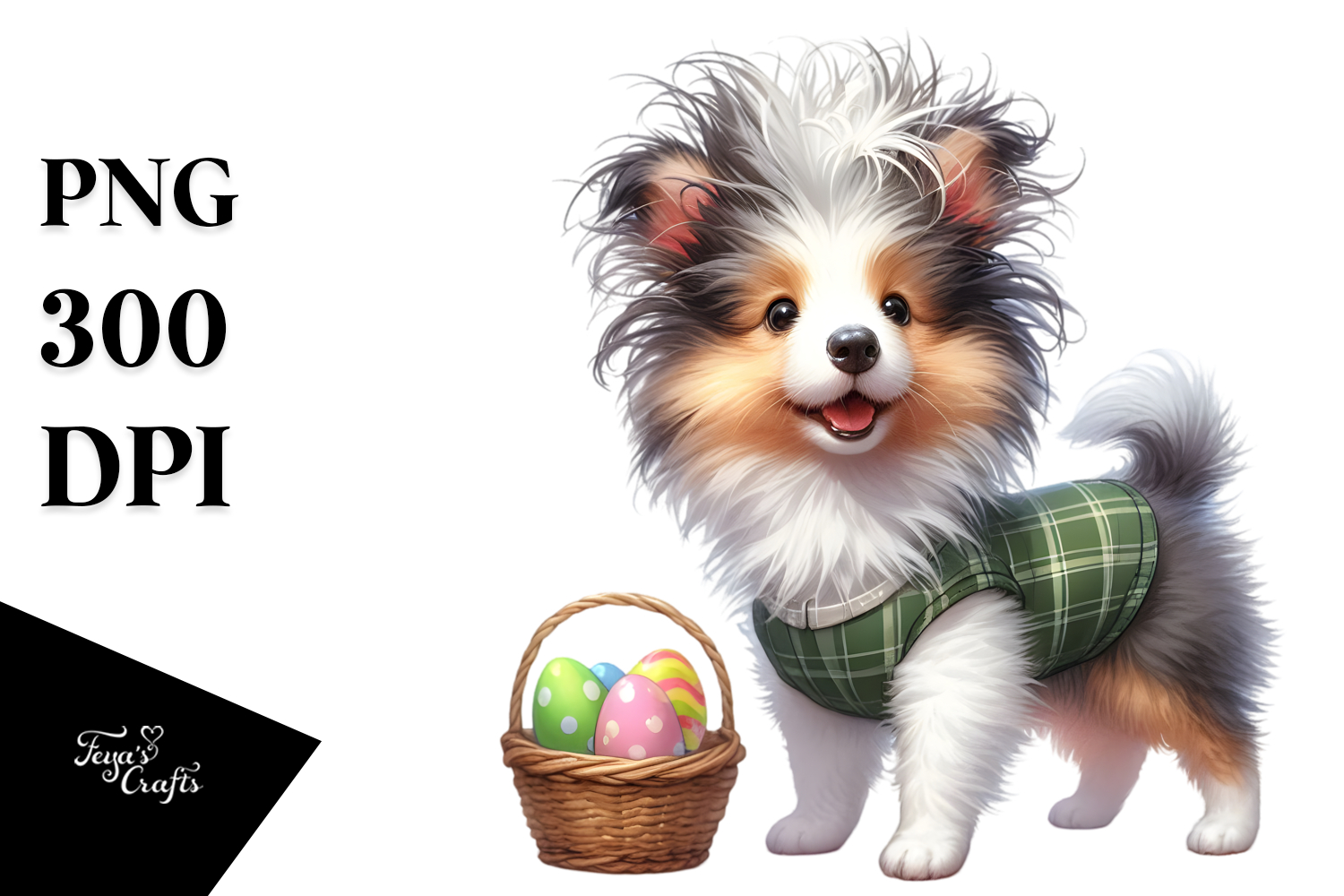 Cute Watercolor Collie with Bunny Years Holding an Easter example image 1