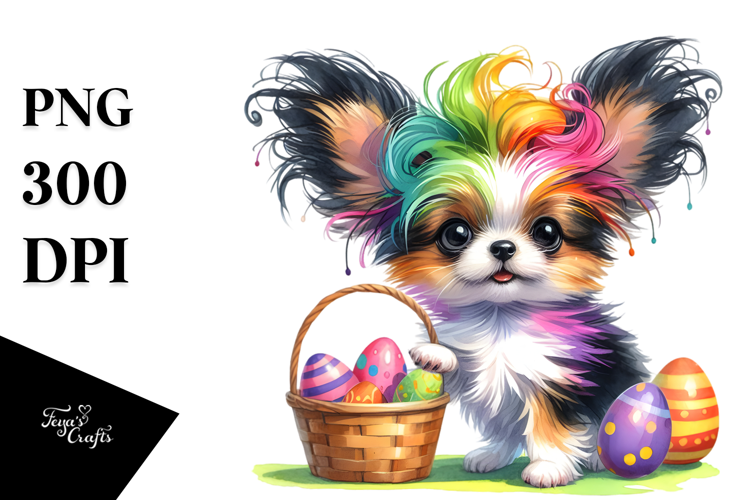 Cute Watercolor Papillon with Crazy Haircut Holding an