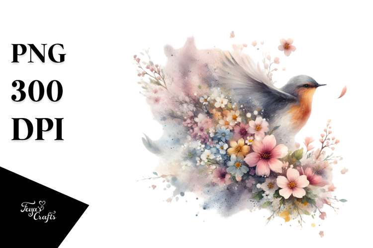 Similar Design Products to Colorful Bird Spring Flowers PNG