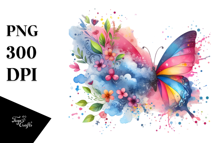 Similar Design Products to Colorful Butterfly with Splashes, PNG