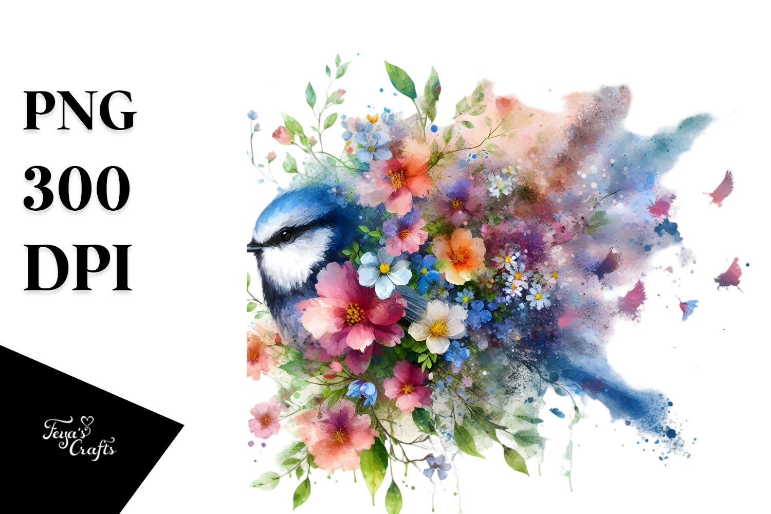 Similar Design Products to Colorful Grungy Bird with Spring Flowers, High-Res PNG
