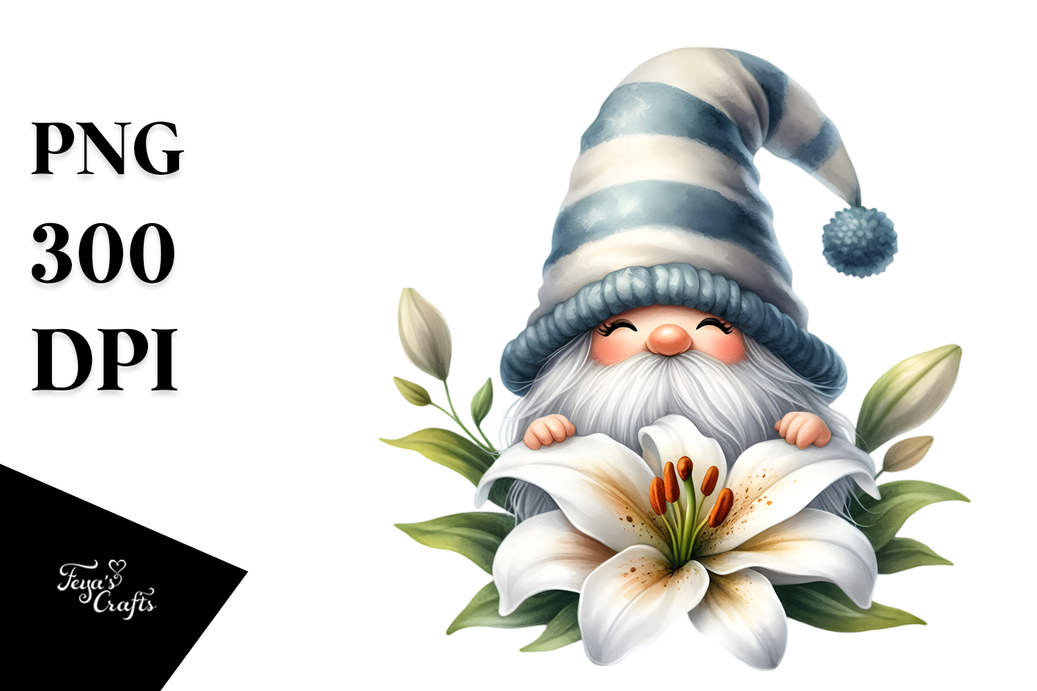 Cute Gnome with Lily, PNG example image 1