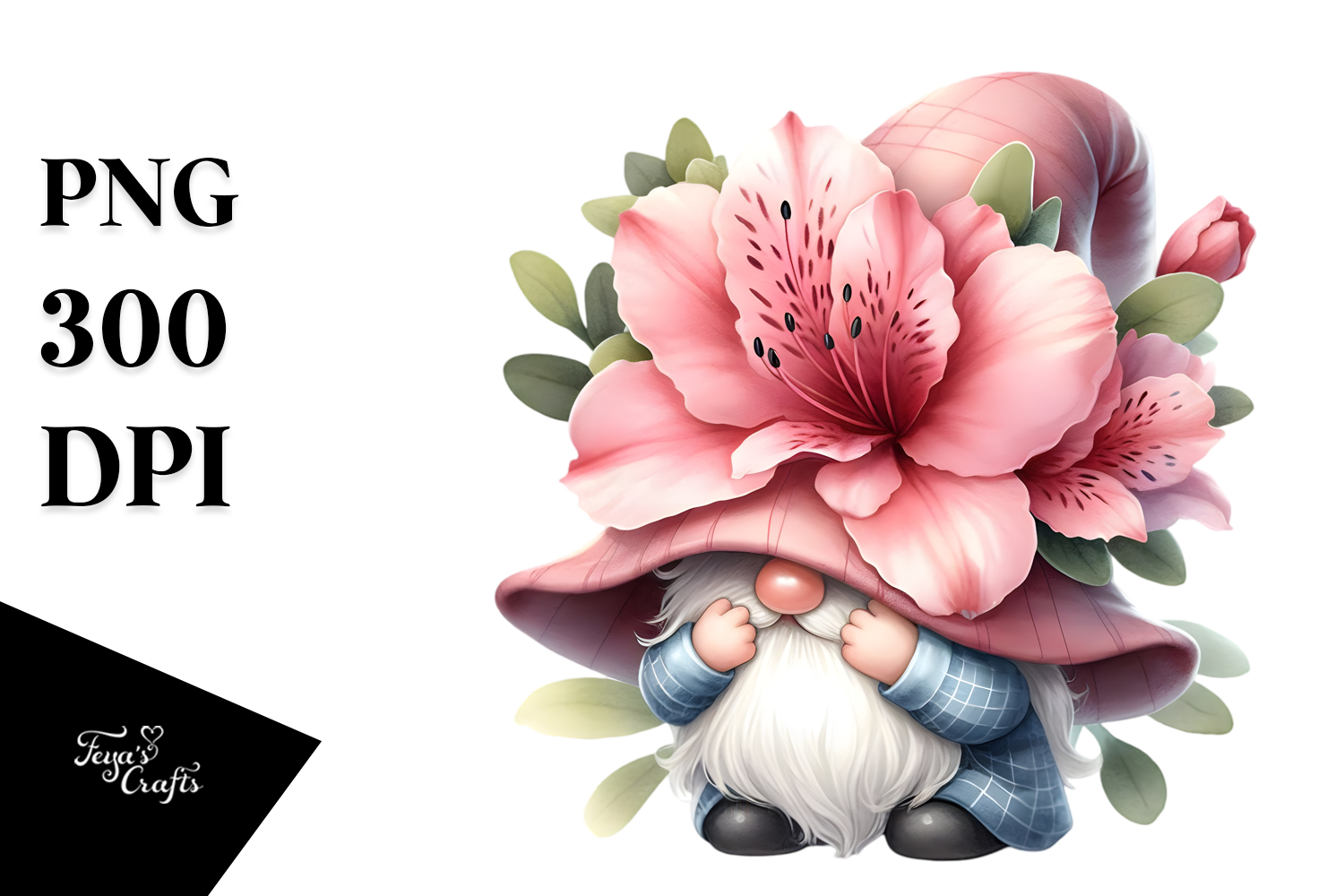 Watercolor Cute Gnome Azalea Whitebackground Bighat