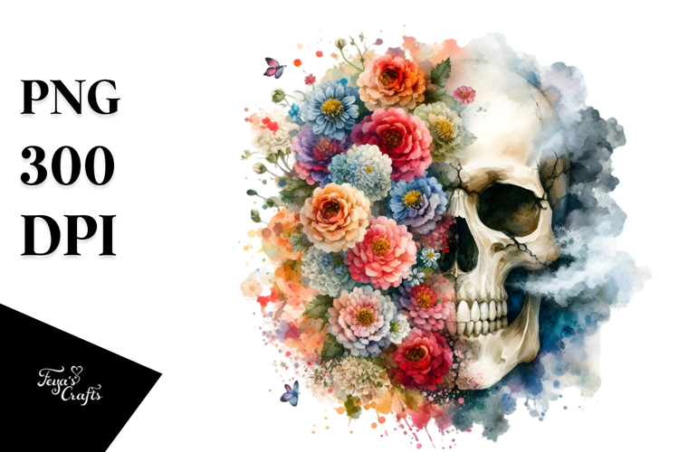 Colorful Skull with Flowers, High-Res PNG example image 1